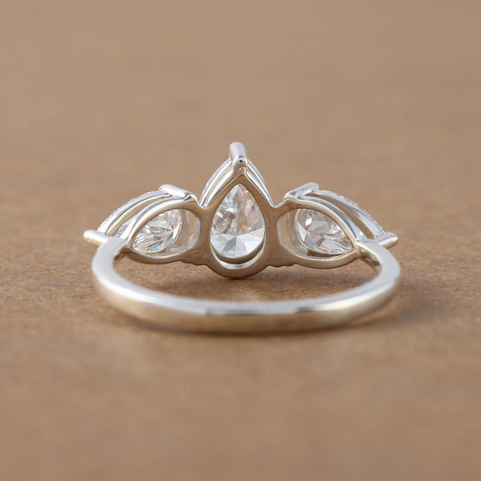 แหวนหมั้นเพชรรูปลูกแพร์แบบเพชร18K สำหรับผู้หญิงแหวนหิน3ชิ้นสีทองหรูหราได้รับการรับรองจากแล็บ