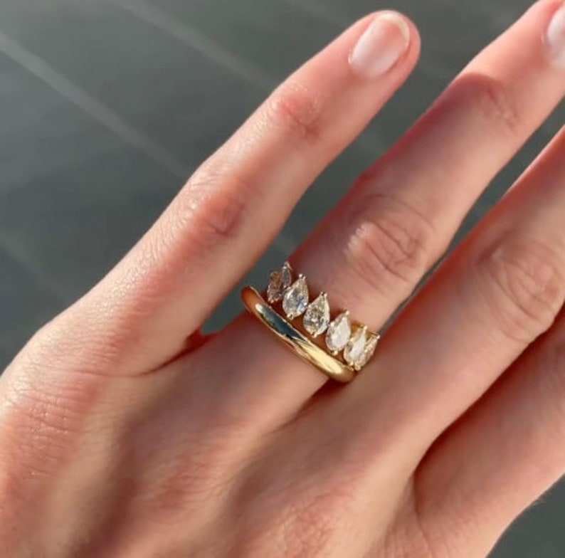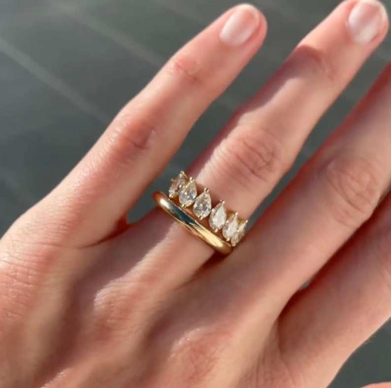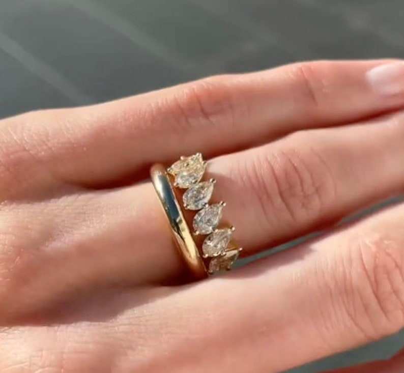 แหวนเพชรทรงลูกแพร์เพาะเลี้ยงในห้องปฏิบัติการ ชุดแหวนวงนิรันดร์สำหรับผู้หญิง ทองคำแท้ 14K ของขวัญเซอร์ไพรส์สำหรับงานหมั้นหรือมอบให้แฟนสาว