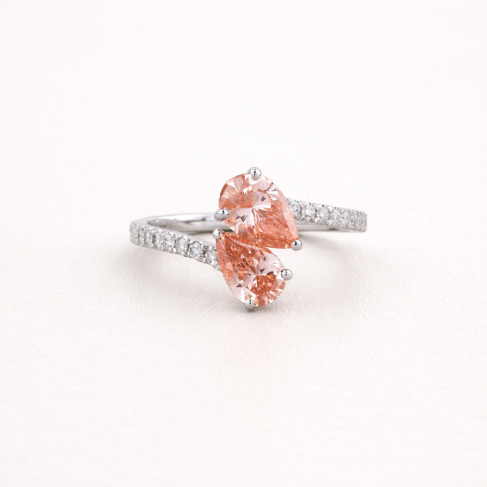 แหวนเพชรรูปหยดน้ำสีชมพูเพาะเลี้ยงในห้องปฏิบัติการ สองเม็ด เงินแท้ 925 ชุบโรเดียม ประดับเพชรแบบฝัง วงแหวนสไตล์ชาติพันธุ์ เครื่องประดับชั้นดี