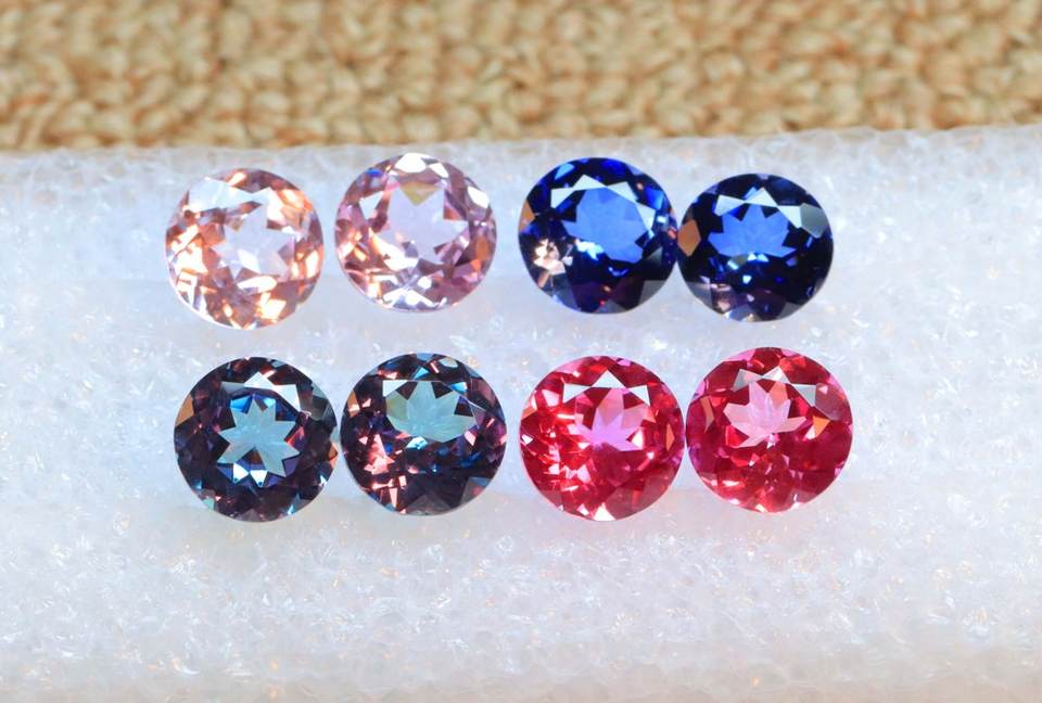 คู่แซฟไฟร์สีชมพูคู่แล็ปปลูกไพลินคู่แซฟไฟร์สีฟ้าคู่ปลูกอเล็กแซนไดรท์ทับทิมขนาด10มม. สำหรับห้องปฏิบัติการ