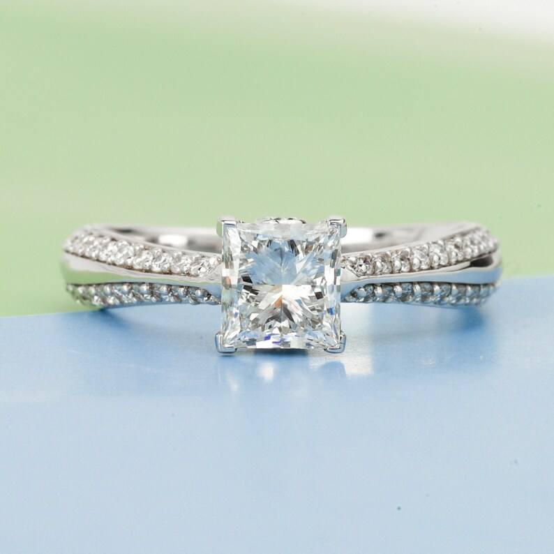 แหวนเพชรทรงปรินเซสคัทเพาะเลี้ยงในห้องปฏิบัติการ 0.5 กะรัต รับรองโดย IGI เพชรที่ผลิตอย่างมีจริยธรรม ประดับด้วยทองคำแท้ 9K 14K 18K