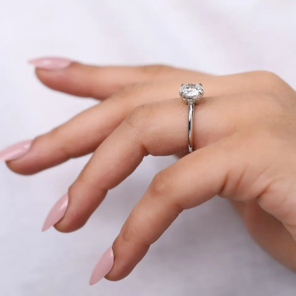 แหวนหมั้นเพชรทรงกลมเจียระไนแบบโซลิแทร์ ผลิตในห้องปฏิบัติการ เงินสเตอร์ลิง ความใส VS1 สวยงาม เป็นทางเลือกที่มีจริยธรรมแทนเพชรธรรมชาติ