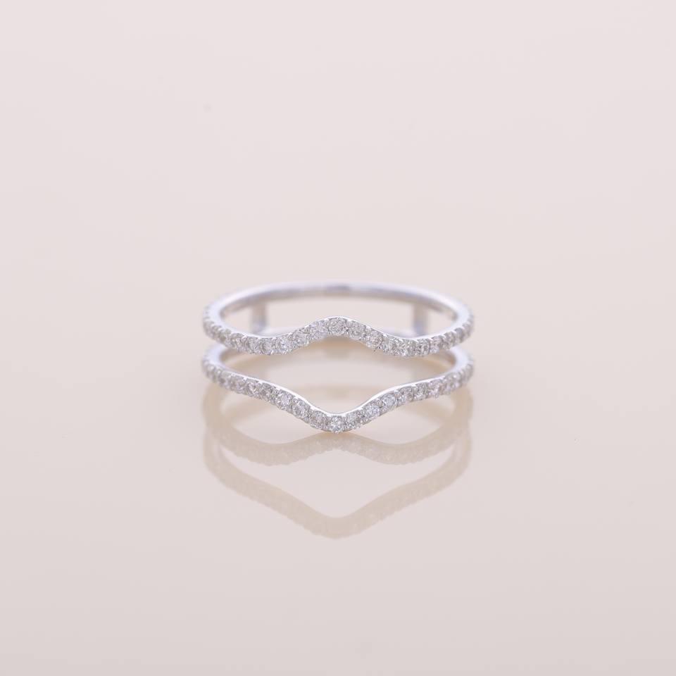 แหวนแต่งงานเพชรทรงกลมเพาะเลี้ยงในห้องปฏิบัติการ ดีไซน์โค้ง 9K ทองคำขาว ทองคำเหลือง ทองคำโรสโกลด์ ประดับเพชรแบบ Pave Set สามารถสวมซ้อนกันได้