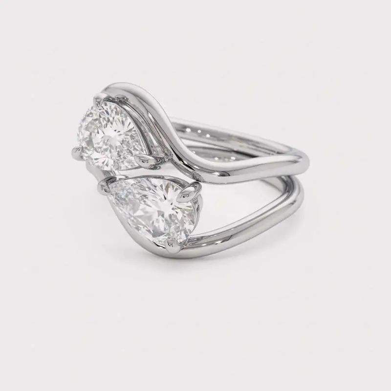 แหวนเพชรทรงลูกแพร์เพาะเลี้ยงในห้องปฏิบัติการ ทองคำขาว/โรสโกลด์/เหลือง 18K ชุบโรเดียม รับรองโดย IGI ดีไซน์ Toi Et Moi