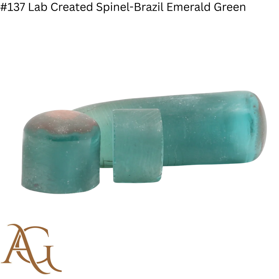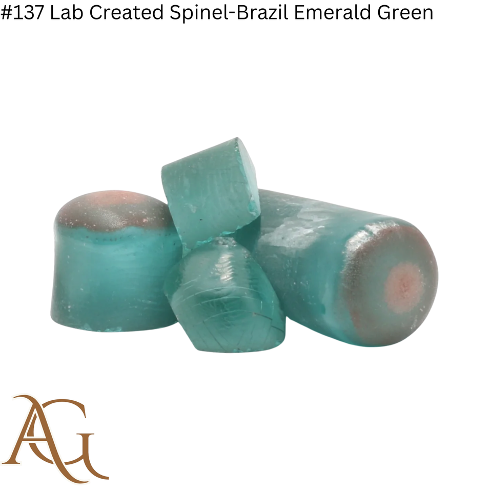สปิเนลที่เพาะเลี้ยงในห้องปฏิบัติการ # 137 ลูกบอลสปิเนลสีเขียวมรกตบราซิลสังเคราะห์จากห้องปฏิบัติการ ผลิตด้วยเทคนิคการหลอมรวมแบบเปลวไฟ