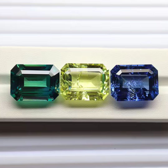 Lab Grown Stones Blue Sapphire Yellow Sapphire Green Sapphire Gemstone 10x8mm - 20x15mm Emerald Cut At Wholesale Price