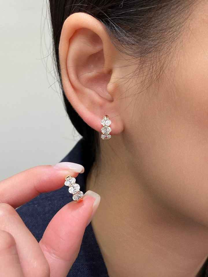 ออกแบบ: ต่างหูห่วงฮักกี้ ประดับเพชรทรงไข่สามเม็ด