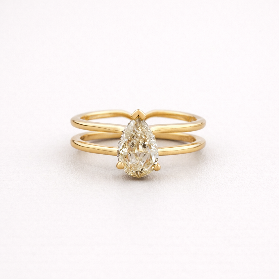 แหวนเพชรทรงลูกแพร์สีเหลืองเพาะเลี้ยงในห้องปฏิบัติการ ได้รับการรับรองจาก IGI สำหรับผู้หญิง ทอง 14K สีเหลือง/ขาว/โรสโกลด์ ดีไซน์แบบสองวงสไตล์ชาติพันธุ์