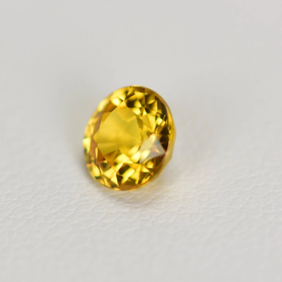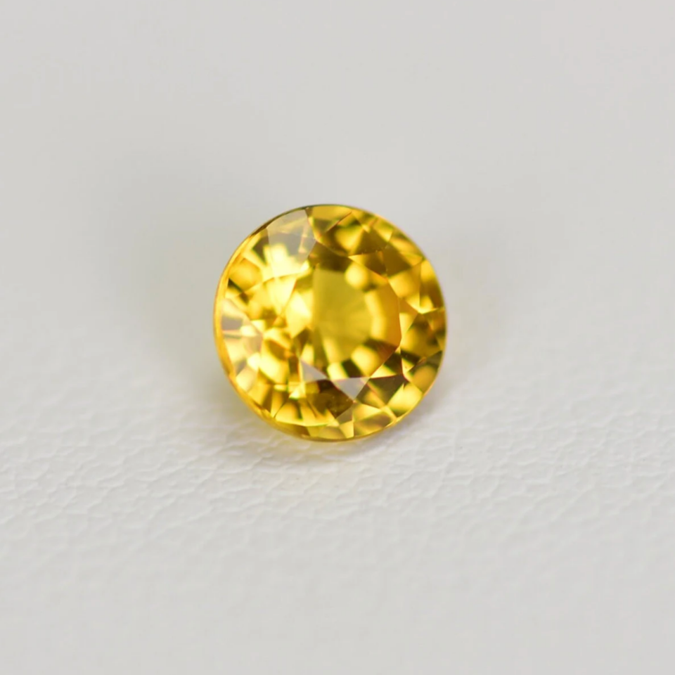 หินแซฟไฟร์สีเหลืองทรงกลมตัดหลวมสำหรับทำเครื่องประดับอัญมณีทำเปลวไฟคอรันดัม4 5 6 8 10มม. ได้รับการรับรองในห้องปฏิบัติการ
