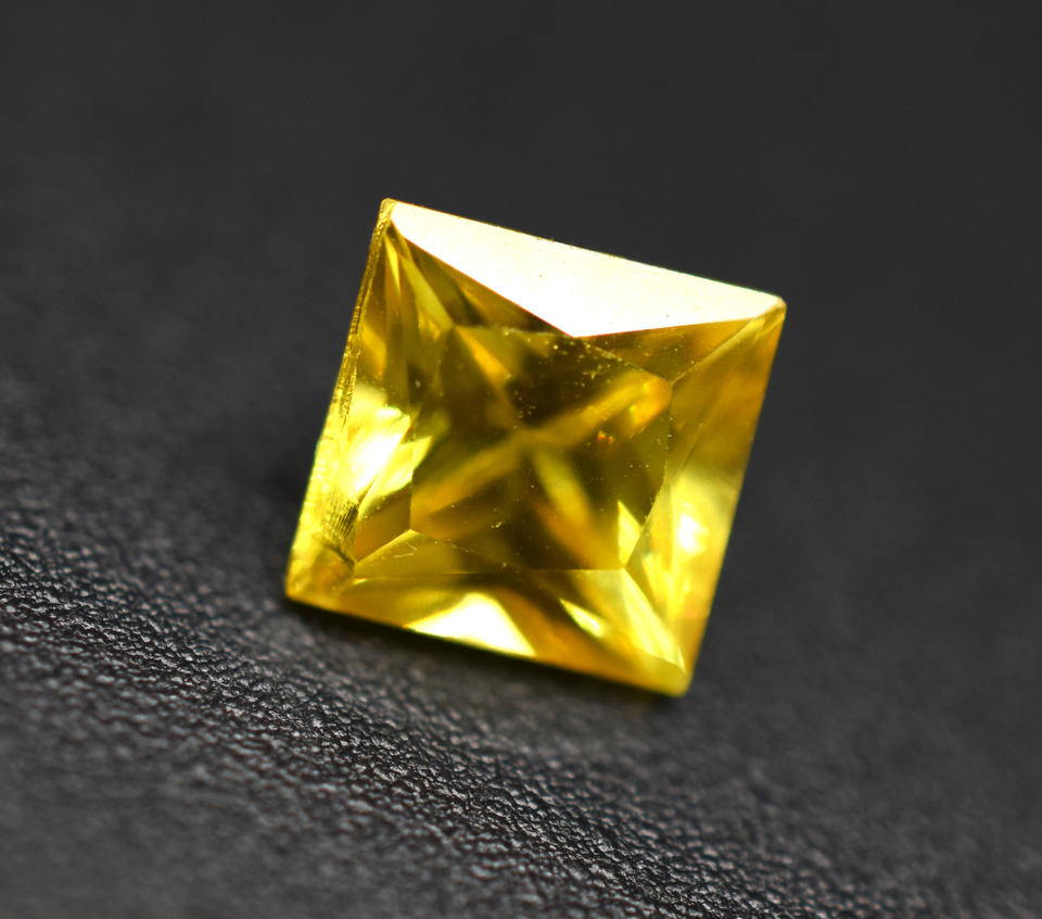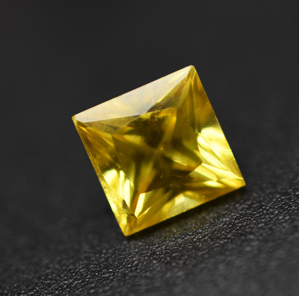 หินแซฟไฟร์ทรงสี่เหลี่ยมสีเหลืองตัดขนาด3มม. ถึง15มม. สำหรับทำเครื่องประดับไพลินสีเหลืองในห้องทดลอง