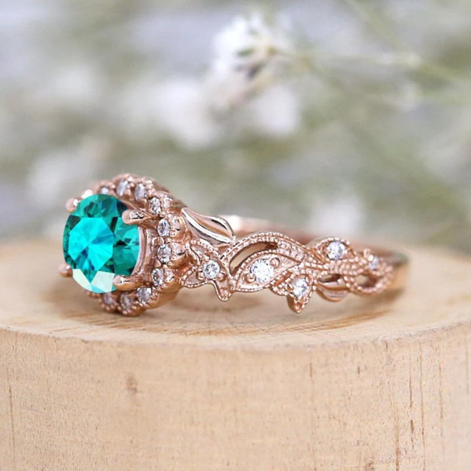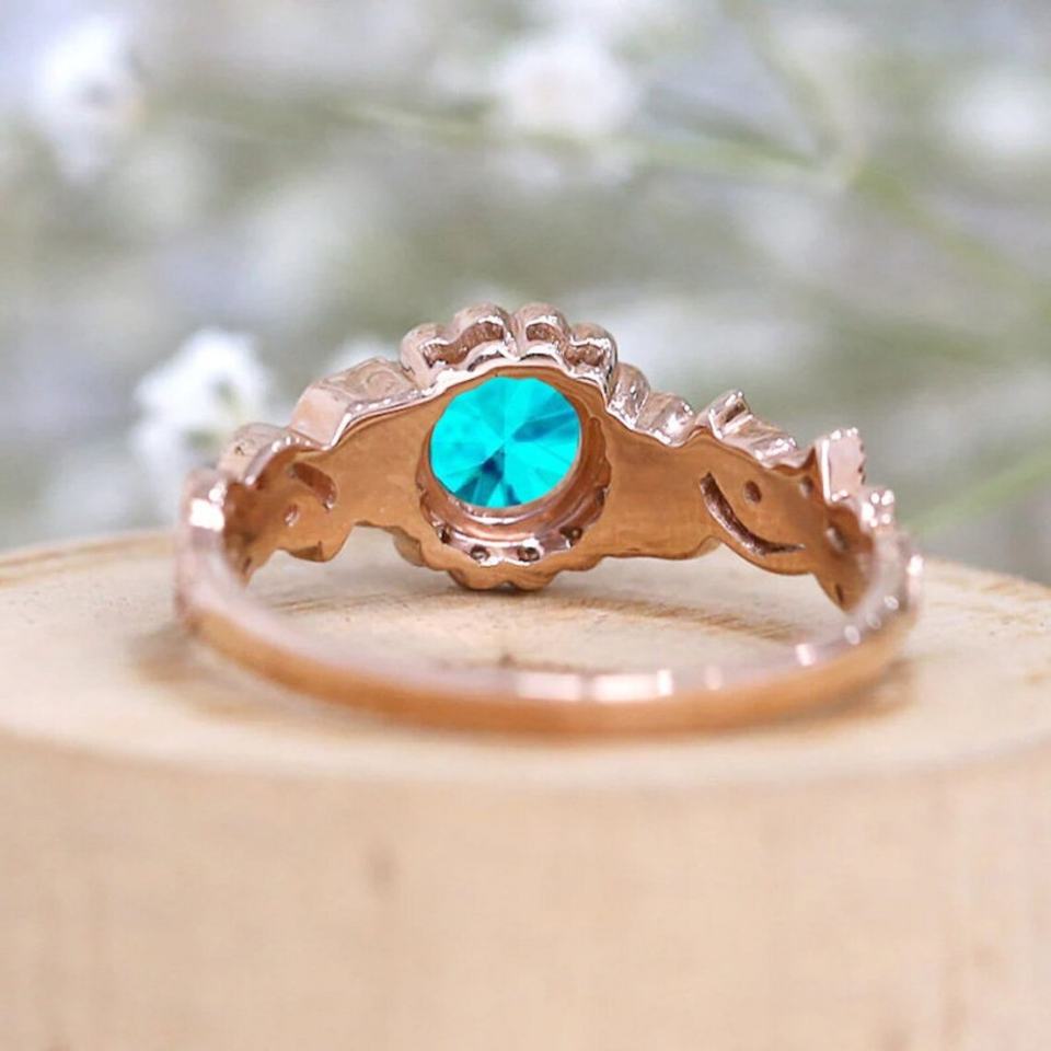 แหวนแต่งงาน/แหวนหมั้น สไตล์อาร์ตเดโค งานทำมือ ประดับพลอยพาราไบต์สีทอง ตัวเรือนเงินแท้ S925 ลายดอกไม้ สำหรับเจ้าสาว ฉลองครบรอบแต่งงาน