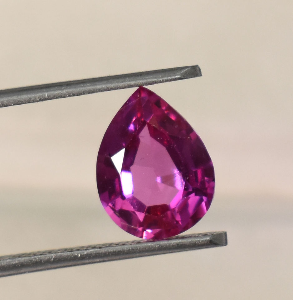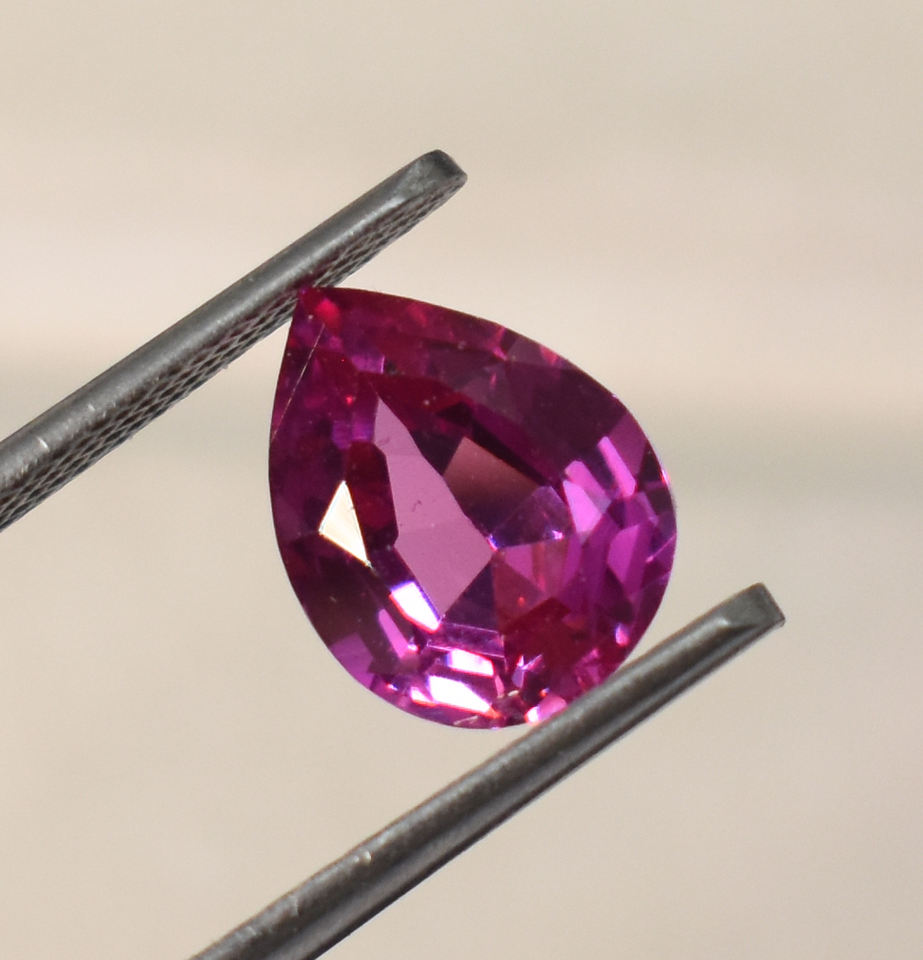 พลอยแซฟไฟร์สีชมพูทรงลูกแพร์เจียระไนแบบ Step Cut ขนาด 5x3 มม. 30x20 มม. ขนาดปรับเทียบแล้ว พลอยเพาะเลี้ยงในห้องปฏิบัติการ สำหรับทำเครื่องประดับ DIY
