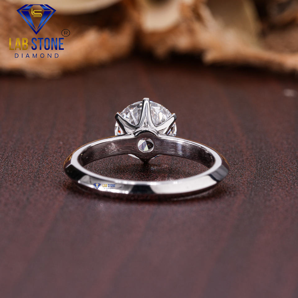 หินในห้องทดลอง1.25 TDW แหวนทองคำขาวประดับเพชรทรงกลมสี EF-VS solitiare