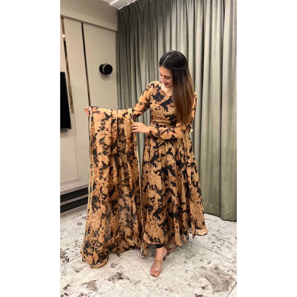 วัสดุออร์แกนซา Tabhi: การใช้วัสดุออร์แกนซา Tabhi ให้เนื้อผ้าที่เบาและสง่างาม เพิ่มความสวยงามและการสัมผัสโดยรวมของชุดอานาร์คาลี