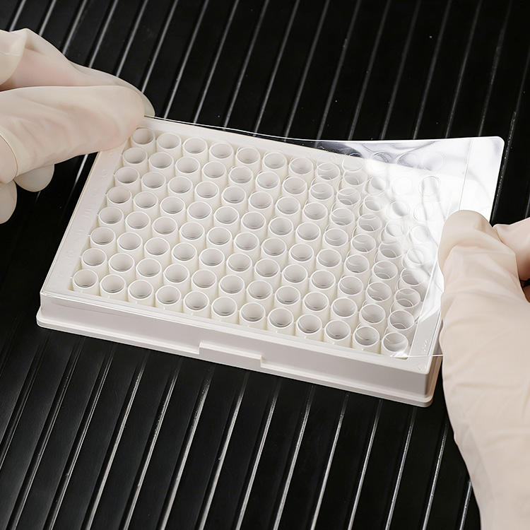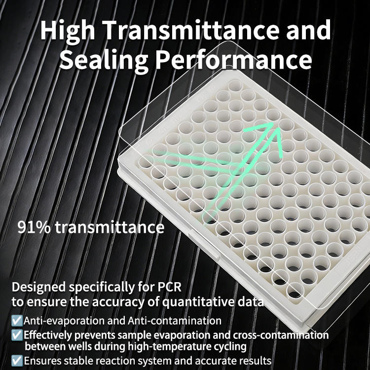 ฟิล์มปิดผนึกไมโครเพลท 96 หลุมสำหรับห้องปฏิบัติการ แผ่น PCR ใส ทนรังสียูวี วัสดุ PP ก้นแบน