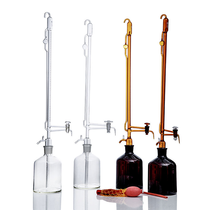 บิวเรตแก้วใสสำหรับห้องปฏิบัติการ แบบอัตโนมัติและกึ่งอัตโนมัติ พร้อมก๊อก PTFE แก้ว ขนาด 10-50 มล. รุ่น HS HS019