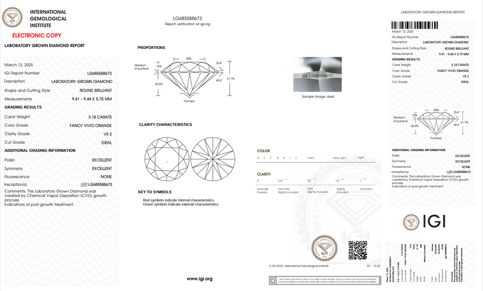 เพชรทรงหลวม VS2สีส้มสดใสแฟนซีรับการรับรอง IGI จากห้องทดลองเพชรกะรัต3.18กะรัต