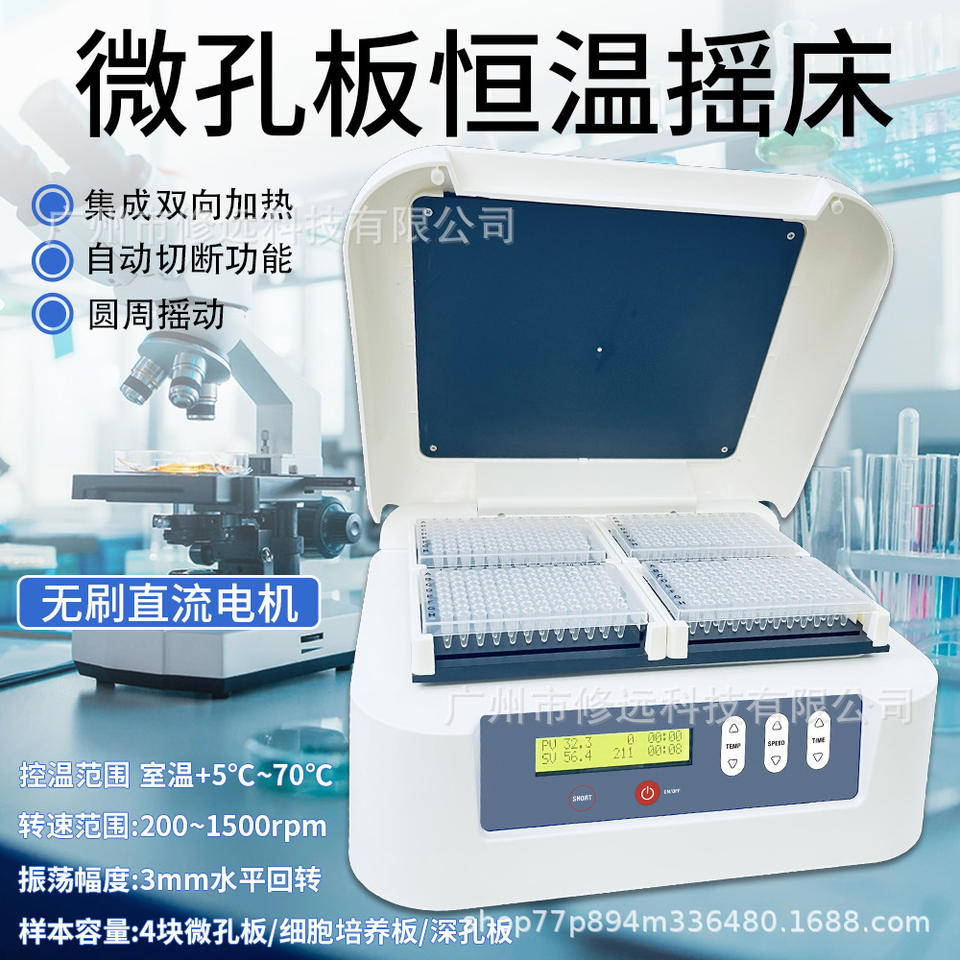 เครื่องเขย่าแบบควบคุมอุณหภูมิคงที่ชนิดไมโครพอรัสสำหรับห้องปฏิบัติการ รุ่น DS007EU ควบคุมแบบดิจิตอล พร้อมหน้าจอ LCD แสดงผล ความเร็ว 200-1500 รอบต่อนาที เครื่องเขย่าแบบออสซิลเลเตอร์สำหรับงานวิทยาศาสตร์