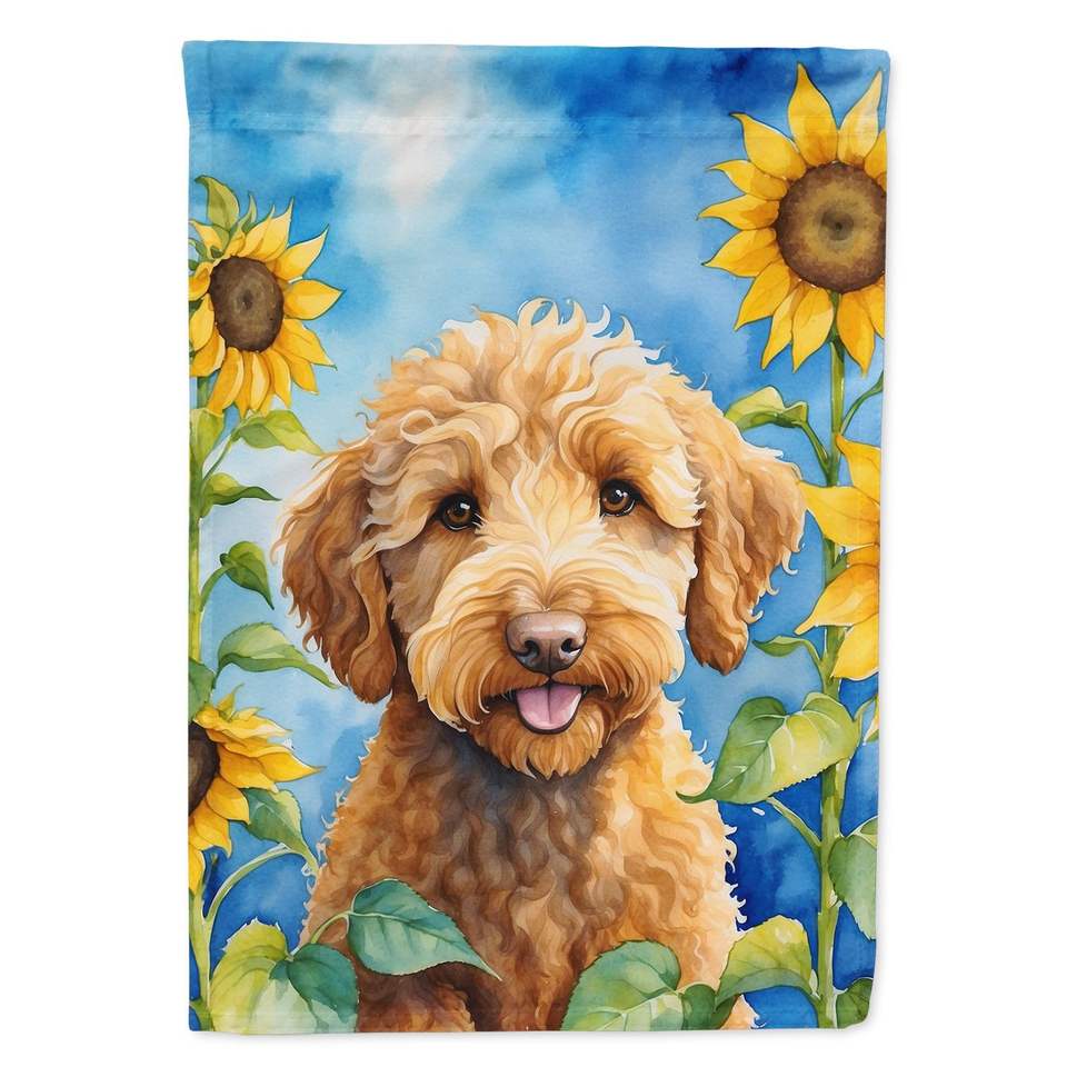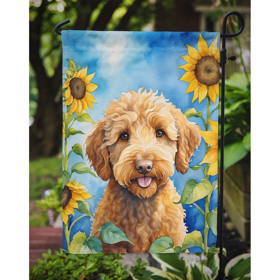 ธงรูปดอกทานตะวันของสุนัขพันธุ์ลาบราดูเดิ้ลธงประดับสวนหลากสีสำหรับชานบ้านลานลานลานประดับกล่องจดหมายธงแบนเนอร์สำหรับเตียงดอกไม้ขนาดสวน