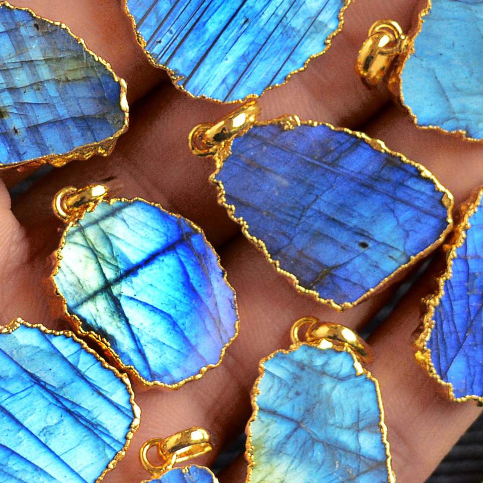 Labradorit Edelstein จี้ตัวอักษรแขนแขน,สร้อยคอจี้ตัวอักษรชุบโลหะด้วยไฟฟ้าสีฟ้าประกายหินลาบราดอไรต์