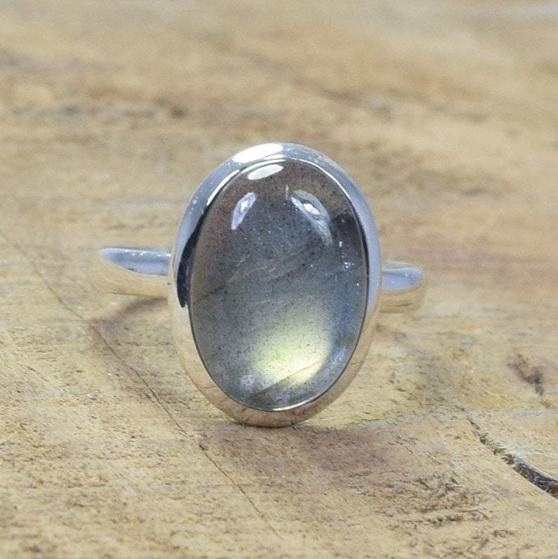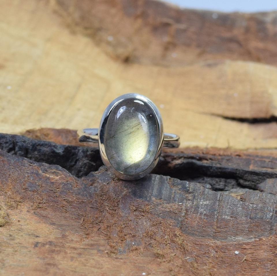 แหวนอัญมณีเงินแท้925ลาบราดอไรต์แหวนสีดำแหวนธรรมชาติสไตล์ลาบราดอไรต์ของขวัญวันเกิด
