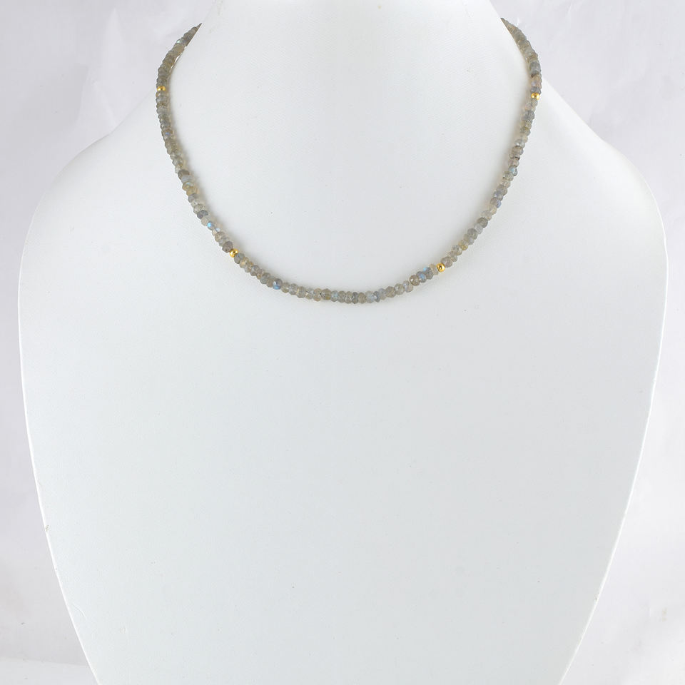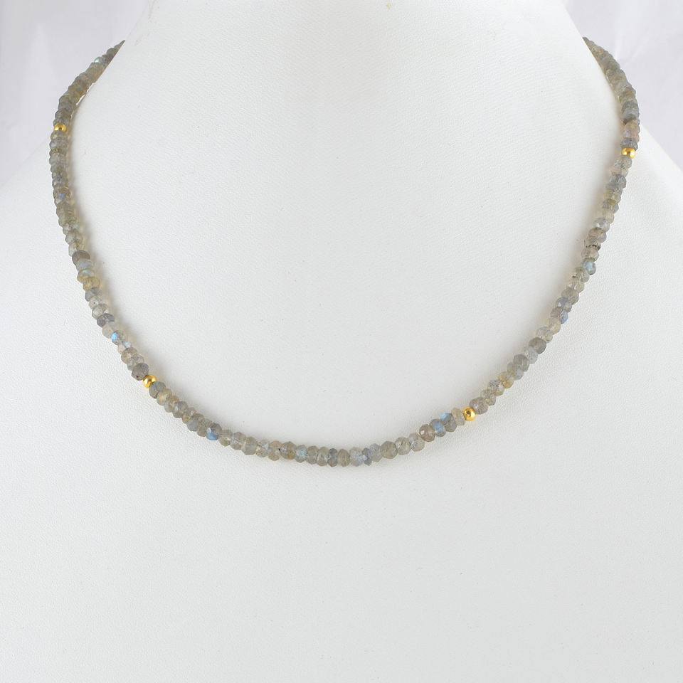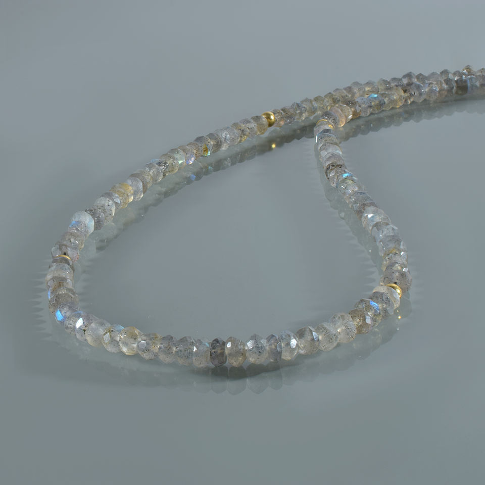 สร้อยคอลูกปัดลาบราโดไรต์, สร้อยคอพลอยสีเทา, สร้อยคอคริสตัลบำบัด, สร้อยคอโบโฮแบบเรียบง่าย, ของขวัญลาบราโดไรต์แบบมินิมอล