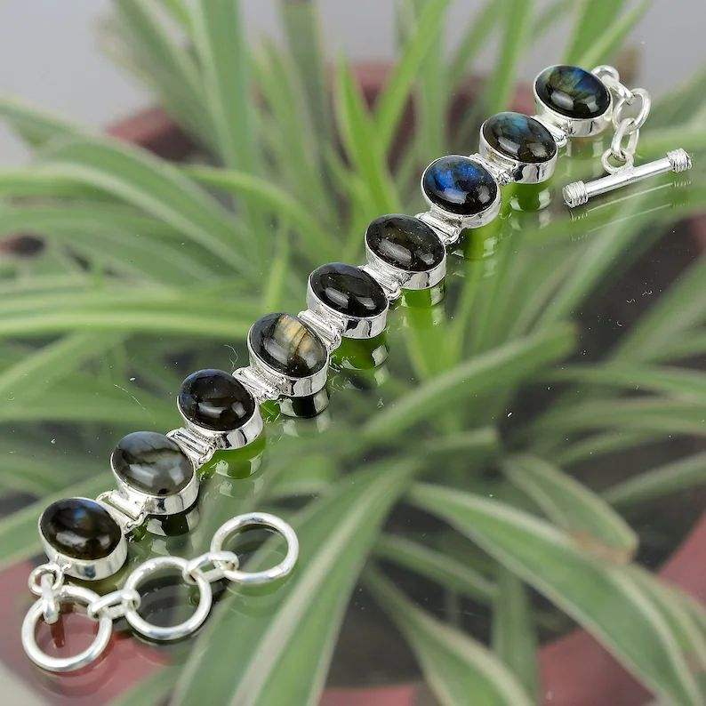 สร้อยข้อมือแลบราโดไรต์925สร้อยข้อมือเงินสเตอร์ลิง