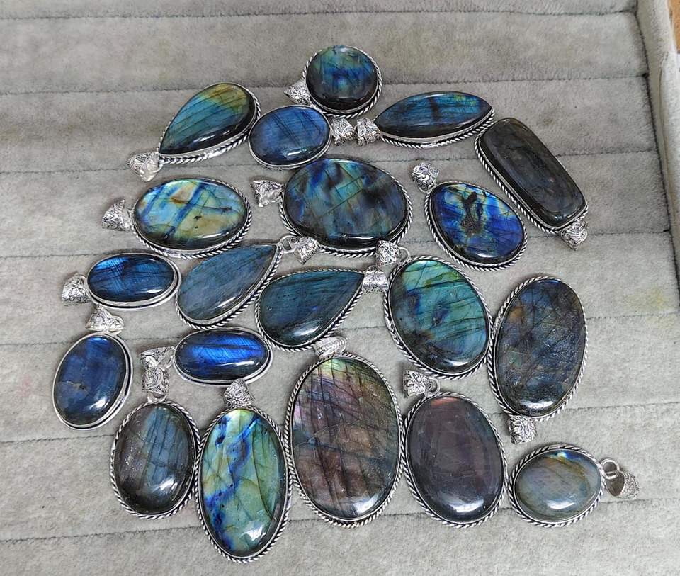 Labradorite Cabochon Pendant | Flashy Blue Fire Polished Gemstone Necklace | Handmade Eco-Friendly Healing Crystal Jewelry |