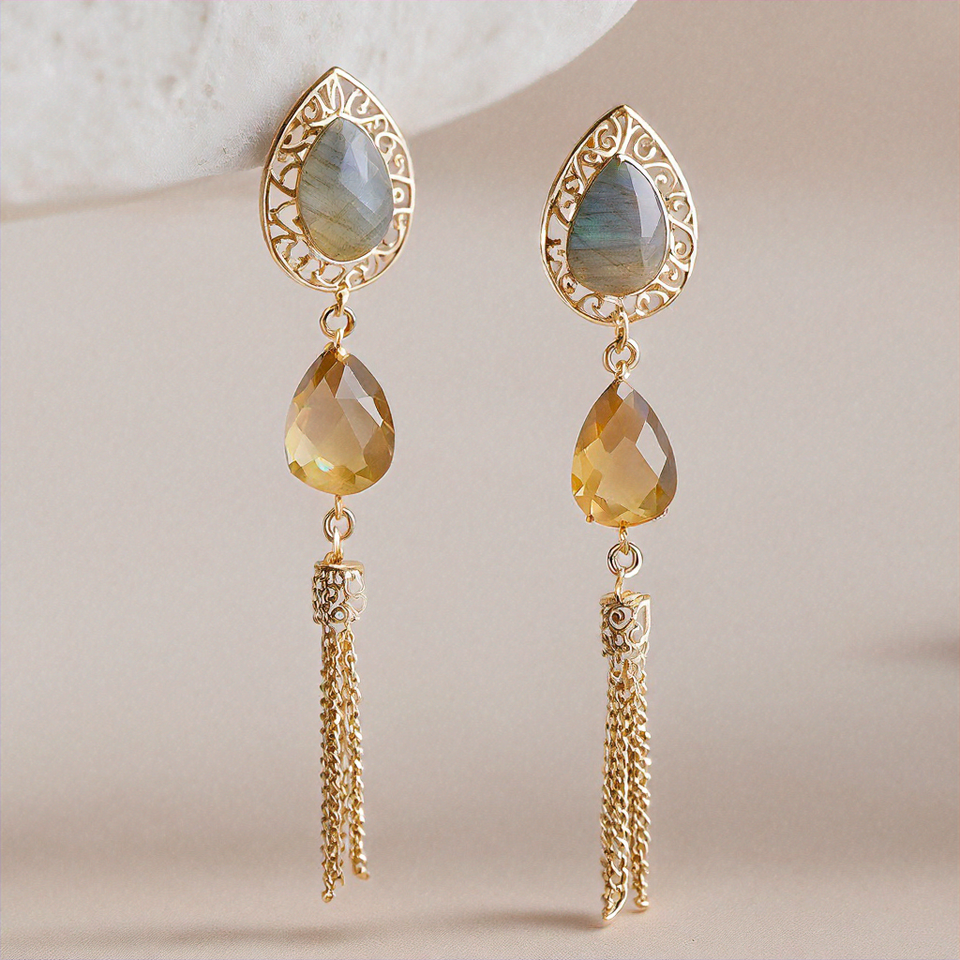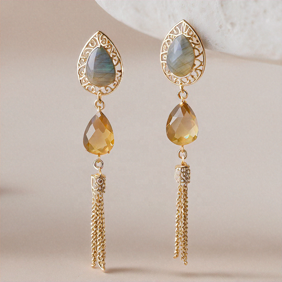 ต่างหูห้อยประดับเพชร & ลาบราดอไรต์ต่างหูห้อยเงินสเตอร์ลิงสวยงามสำหรับสาวๆง่ายๆสำหรับงานแต่งงาน