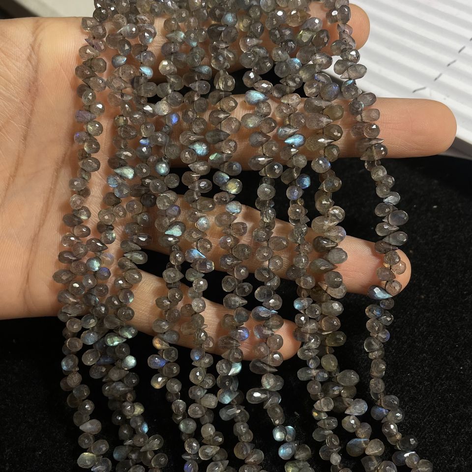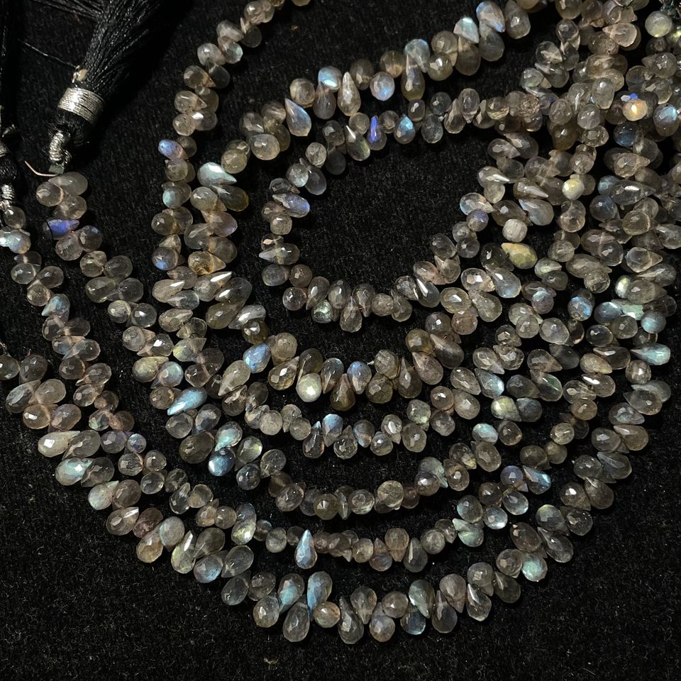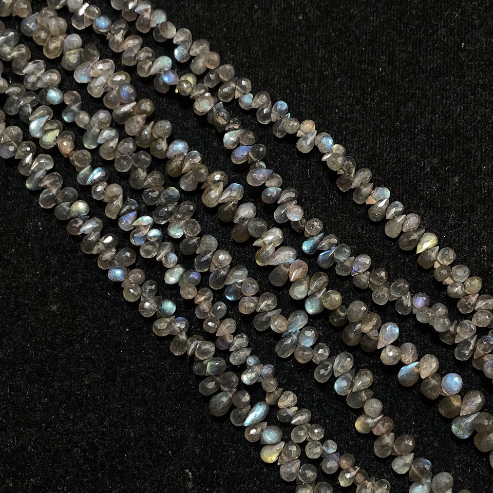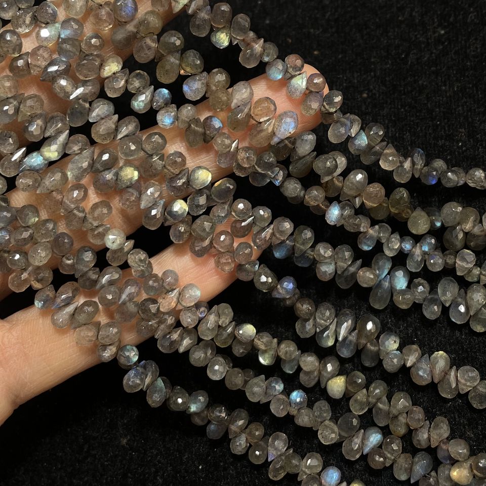 เม็ดหยดน้ำตาแบบเหลี่ยมเพชรพลอยลาบราดอไรต์เม็ดสีรุ้งธรรมชาติหยดสีดำ