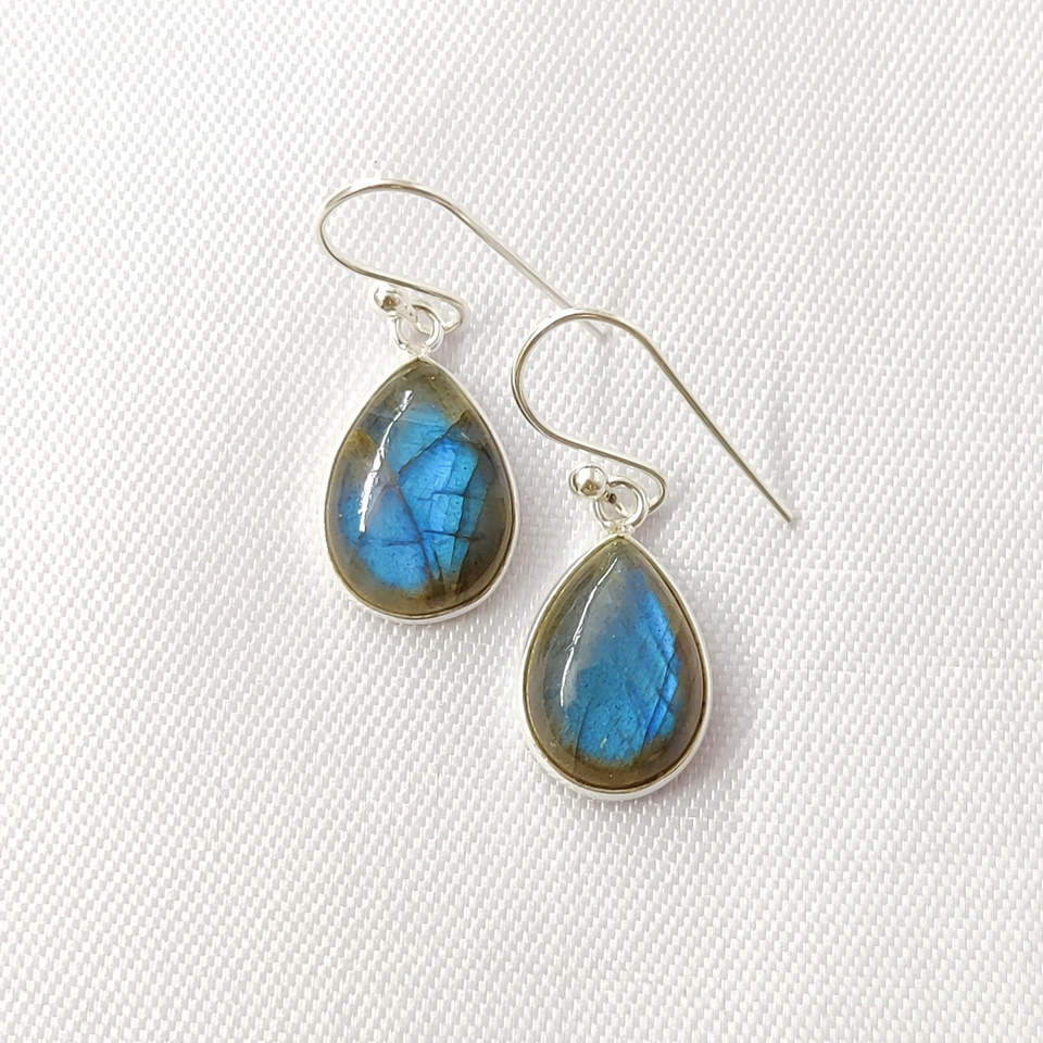 ต่างหูลาบราโดไรต์แฟชั่นทรงหยดน้ำ น้ำหนัก 3.2 กรัม