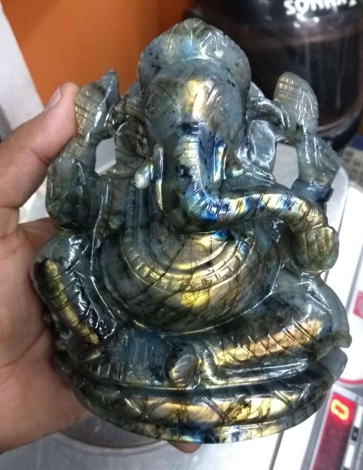 รูปปั้นทางศาสนาพระพิฆเนศลาบราดอไรต์แกะสลักด้วยมือรูปปั้นทำด้วยมือทำจากอัญมณีธรรมชาติขนาดตามต้องการ