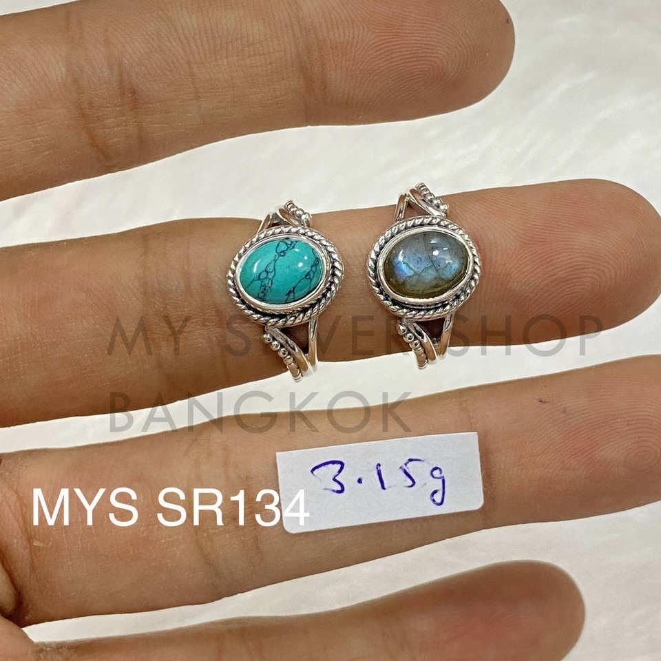 แหวนเงินแท้ 925 ประดับพลอยลาบราโดไรต์ ดีไซน์วินเทจโบโฮลายฉลุ ทำมือ