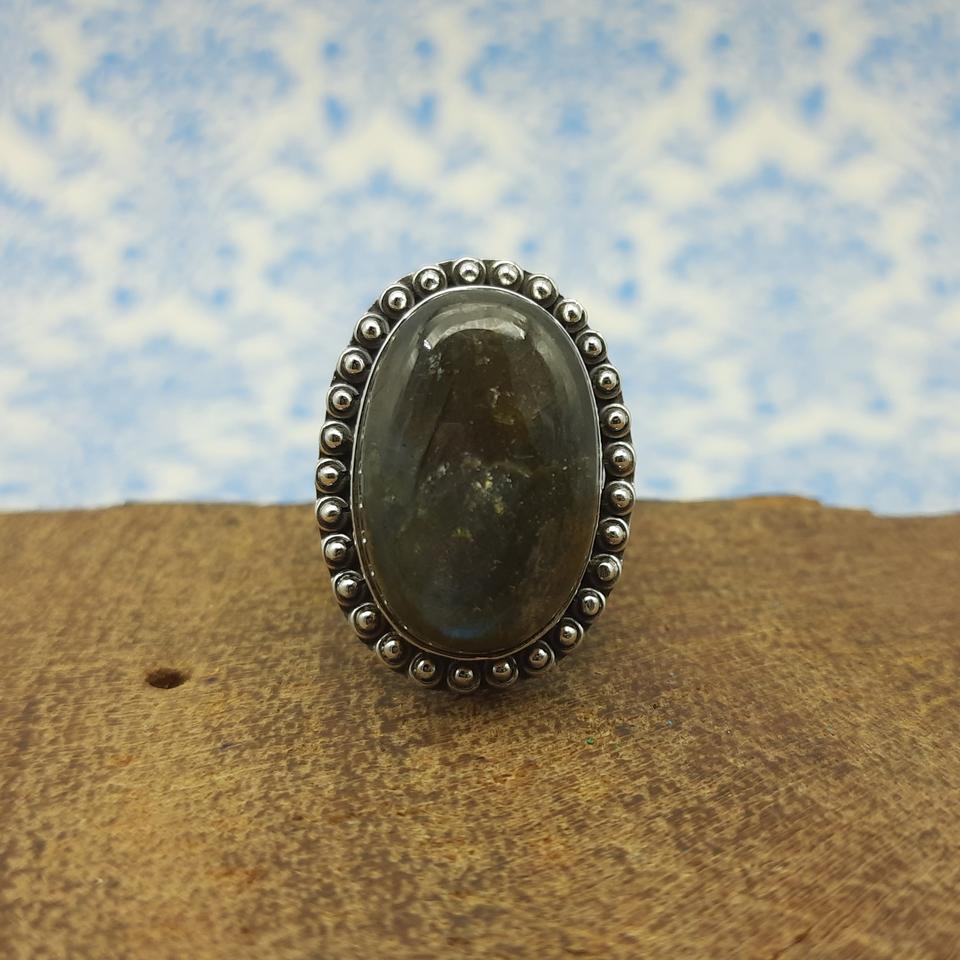 แหวนพลอยลาบราดอไรต์งานราโดไรต์สไตล์โบฮีเมียนแหวนพลอย925ช่างฝีมือทำจากเงินสเตอร์ลิง