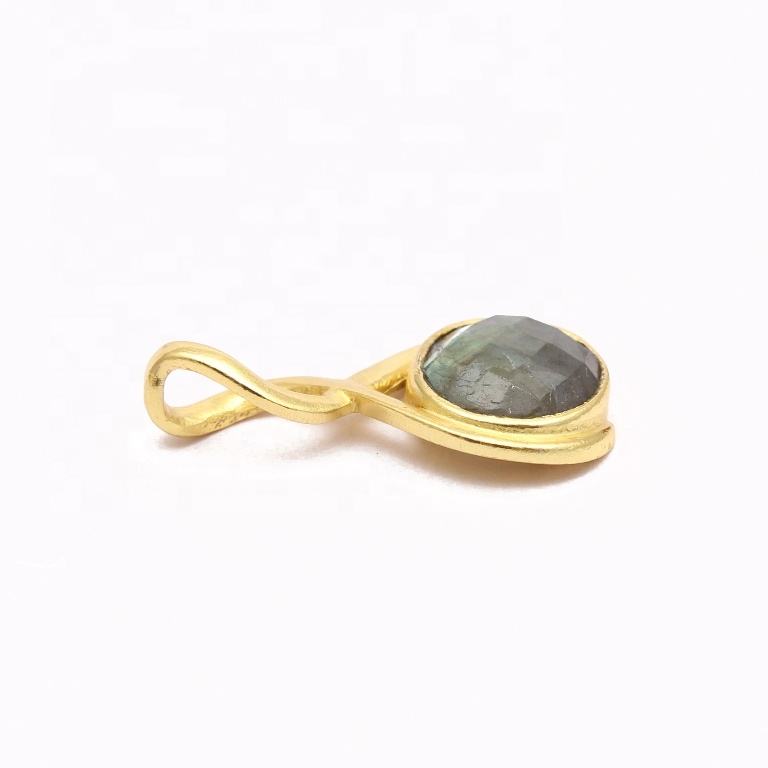 จี้ห้อยคอทรงกลมคลาสสิกทำจากทองเหลืองชุบทองประดับพลอยลาบราดอไรต์ สำหรับทำเครื่องประดับ ขายส่ง