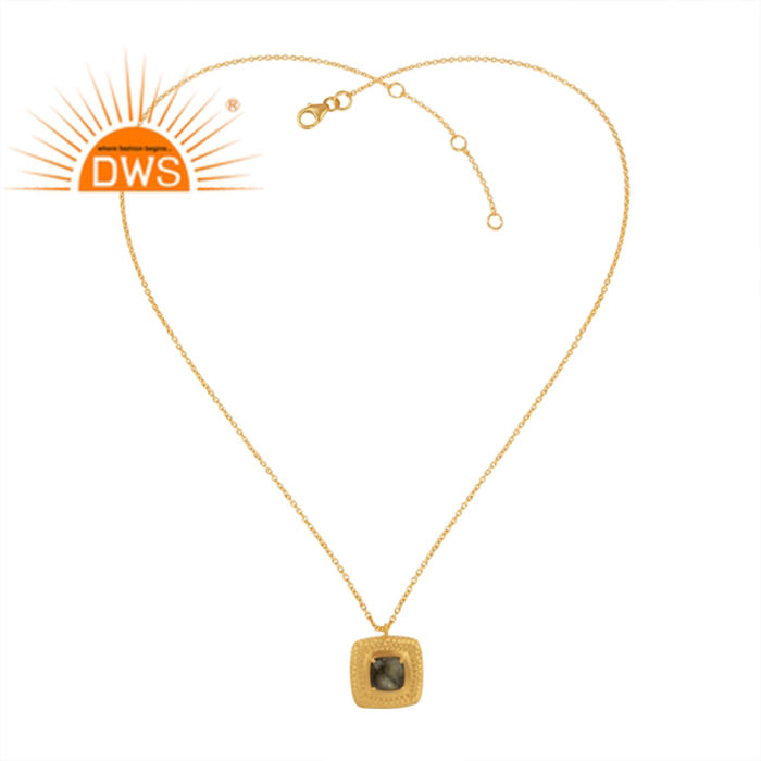สร้อยคอพลอยลาบราดอไรต์ ขายส่ง ชุบทอง ผิวแบบตอกลาย จี้เงินแท้ 925 เครื่องประดับ คอลเลคชั่นคลาสสิก