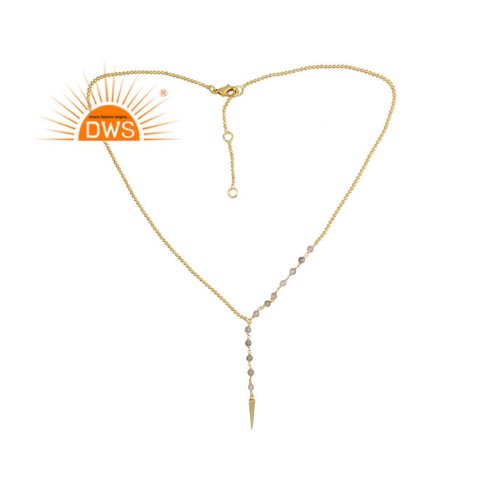 จี้หินลาบราโดไรต์สำหรับผู้หญิง สร้อยคอจากผู้ผลิตเครื่องประดับ แฟชั่นล่าสุดปี 2026 ทองเหลืองธรรมชาติ สร้อยแบบคลาสสิก