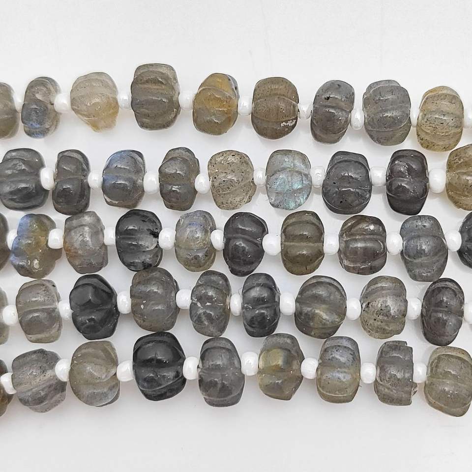 หินอัญมณีลาบราดอไลท์สำหรับแกะสลักเส้นลูกปัดฟักทองขายส่ง