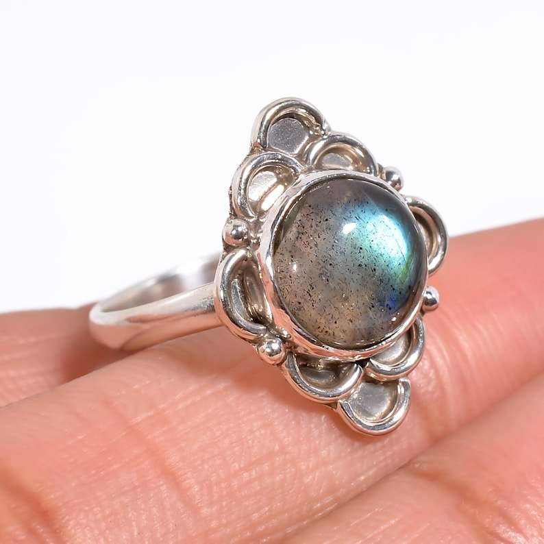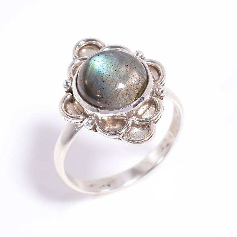 แหวนพลอยลาบราดอไรต์ทำมือ925เงินแท้ทรงกลมเครื่องประดับสวยหรู