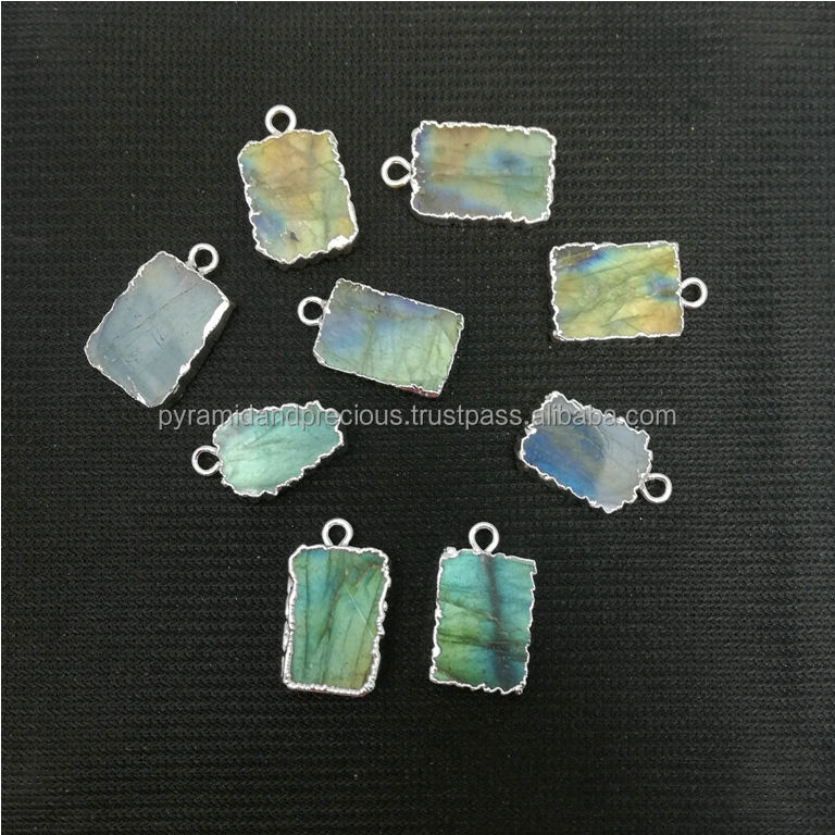 Labradorite Slice จี้-ขนาดเล็ก Silver Edged จี้อัญมณีสำหรับสร้อยคอ