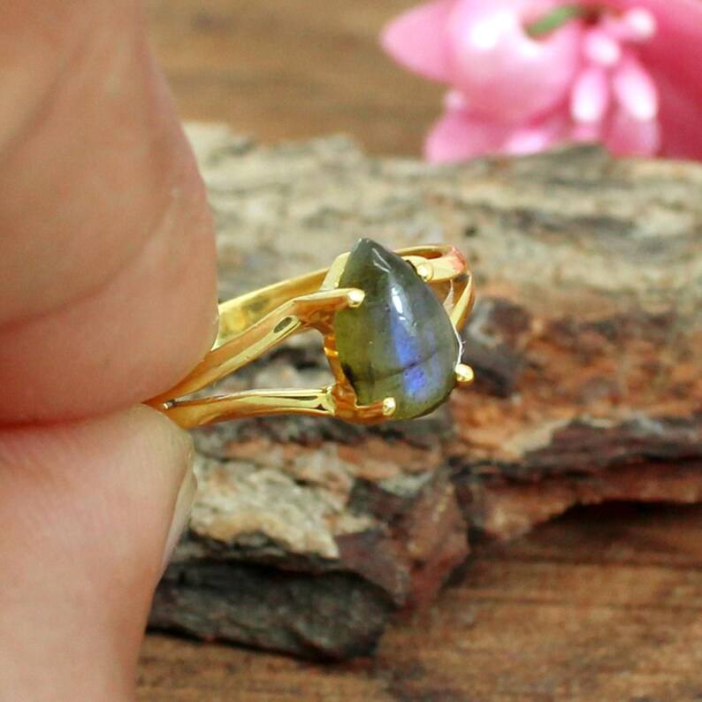 แหวนเงินสเตอร์ลิงอัญมณีลาบราดอไรต์อัญมณีหลวม