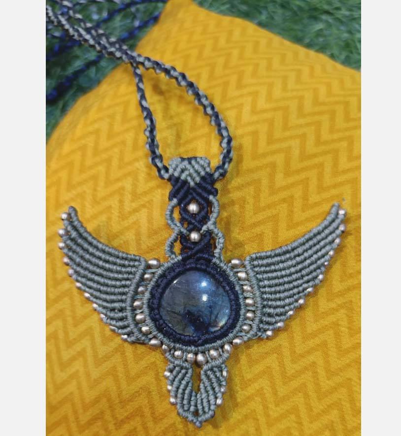 สร้อยโชคเกอร์ macrame ลาบราดอไลท์สำหรับการป้องกันรูปไข่หินธรรมชาติพร้อมลูกปัดทองเหลืองขนาดเล็กปรับได้ทำในอินเดีย