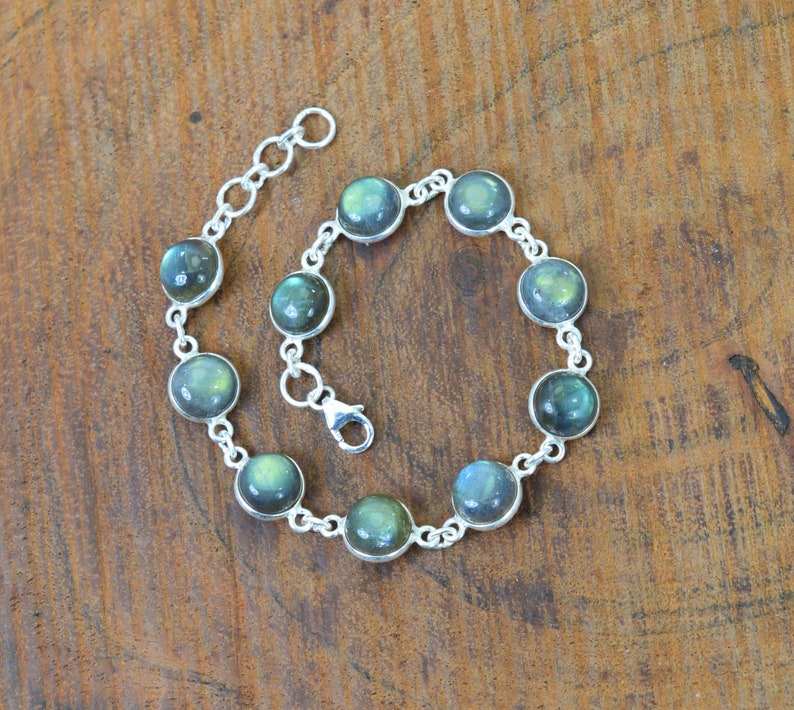 สร้อยข้อมือเงินแท้ 925 ประดับลาบราดอไรต์และมูนสโตน ปรับขนาดได้ งานแฮนด์เมด เครื่องประดับอัญมณี ของขวัญสุดหรูสำหรับผู้หญิง