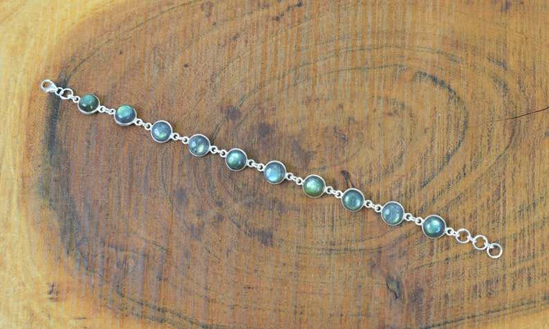 สร้อยข้อมือลาบราโดไรต์มูนสโตน ประดับด้วยหินลาบราโดไรต์แวววาว