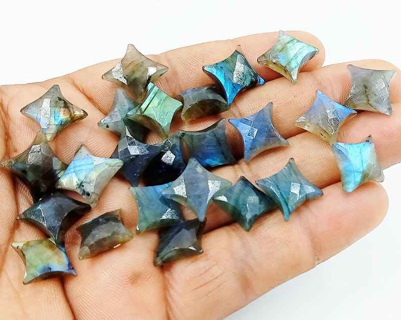 ลูกปัดลาบราโดไรต์รูปดาวนินจาแกะสลัก ลูกปัดพลอยสำหรับทำเครื่องประดับ ขายส่ง