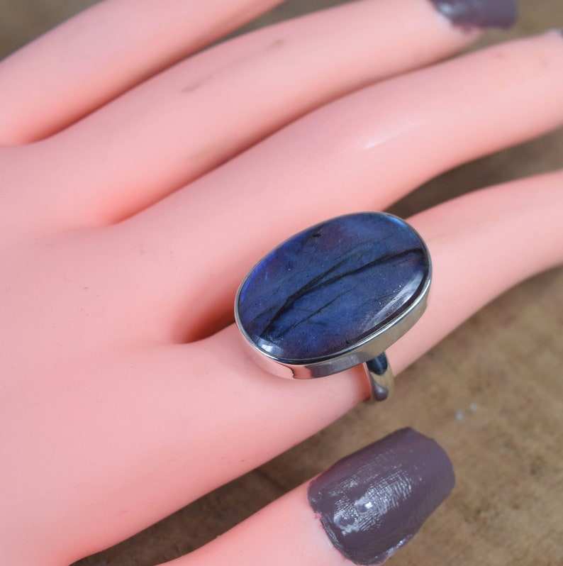 แหวนพลอยลาบราโดไรต์ทรงรีเงินแท้ 92.5 เป็นของขวัญวันเกิด