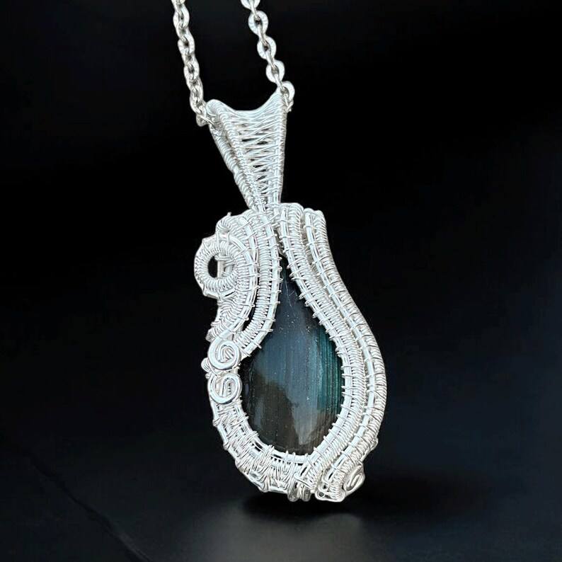 Labradorite Pendant Necklace Handmade Artisan Jewelry Spiritual Energy Gold Plated Silver Wire Wrapped Engagement Gift for Her