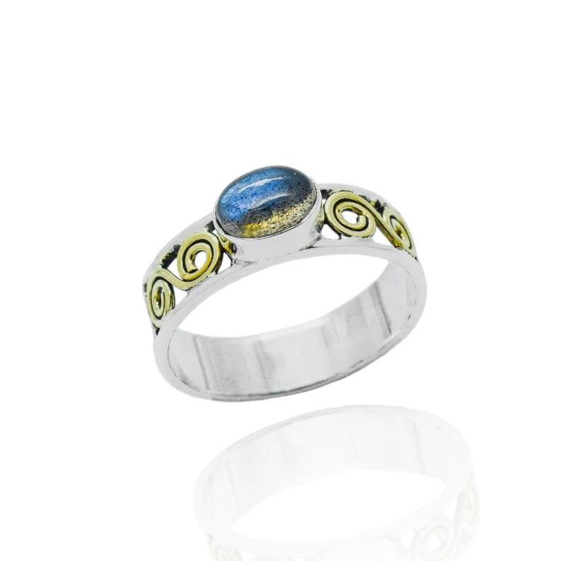 แหวนแลบราโดไรต์925แหวนพลอยทรงหลังเบี้ยทำด้วยมือทำด้วยเงินสเตอร์ลิงเครื่องประดับสีรุ้งหรูหราสำหรับผู้หญิงแหวนงบไม่ซ้ำใคร