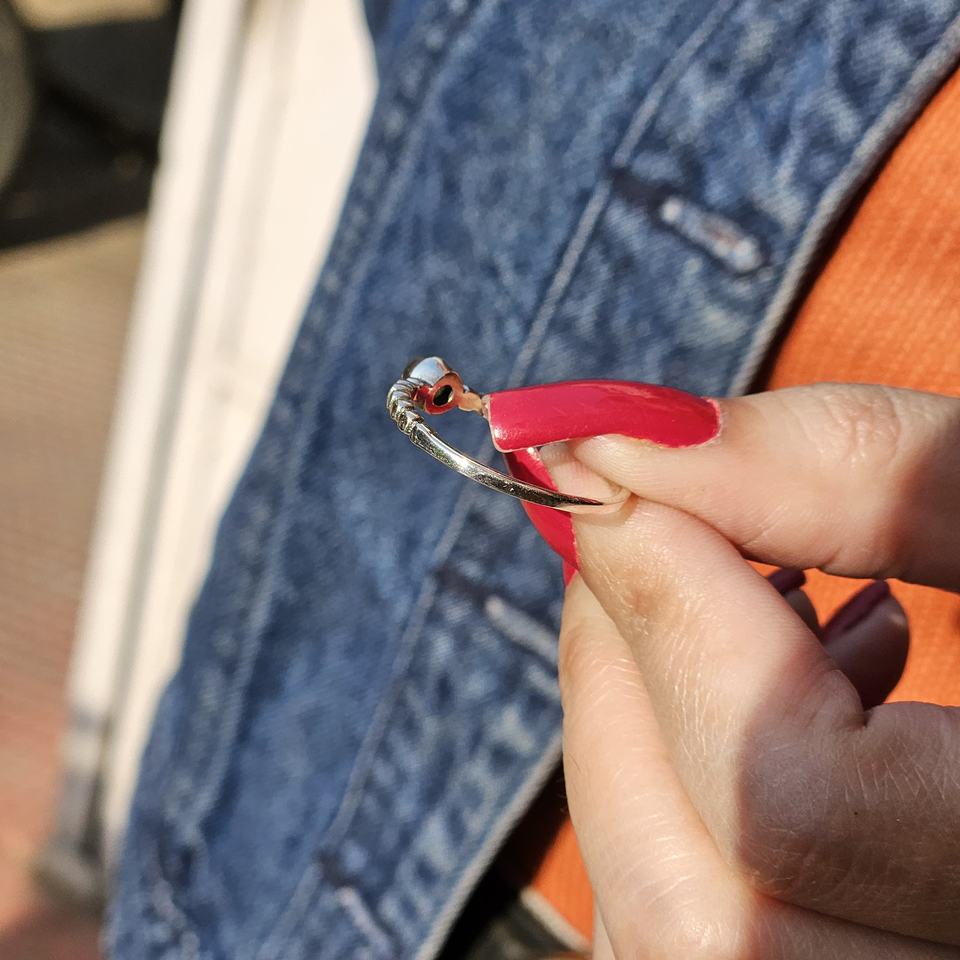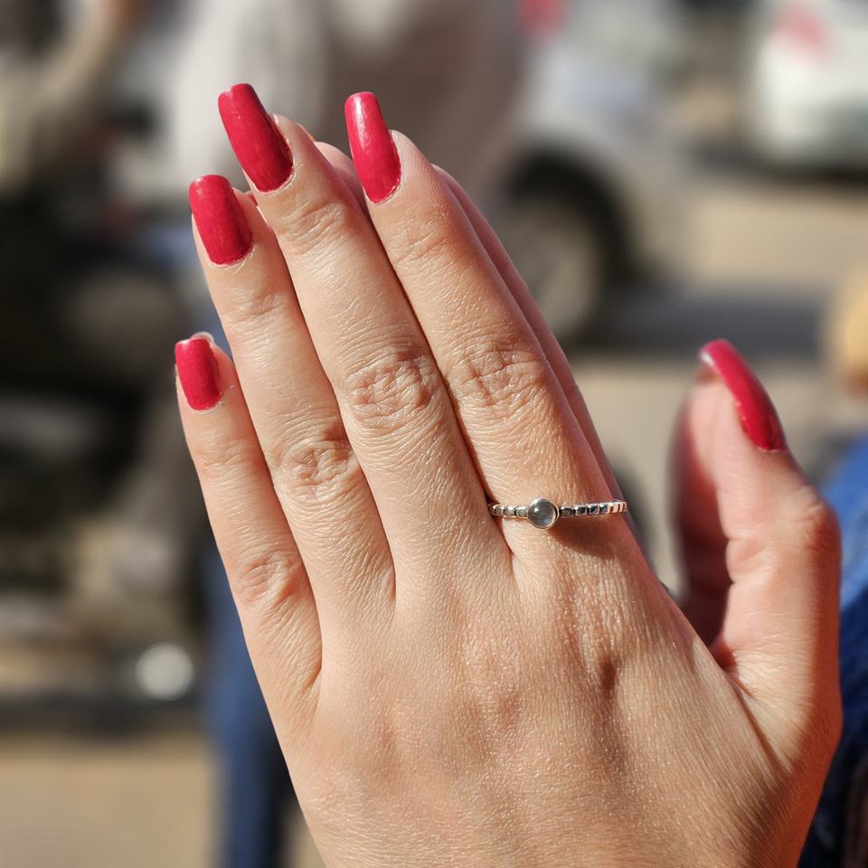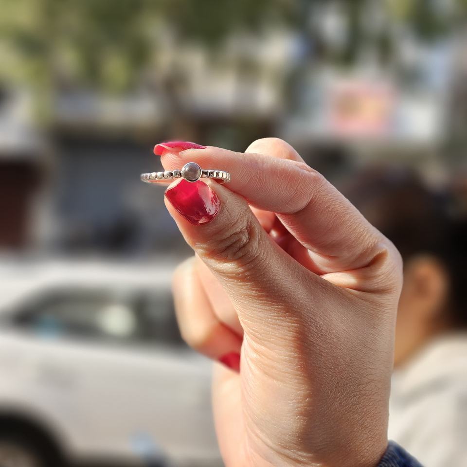 แหวนเงินลาบราดอไรต์น้ำหนักเบามากพร้อมหินขนาดเล็กดีไซน์ทันสมัยสำหรับงานแต่งงานและงานเลี้ยง