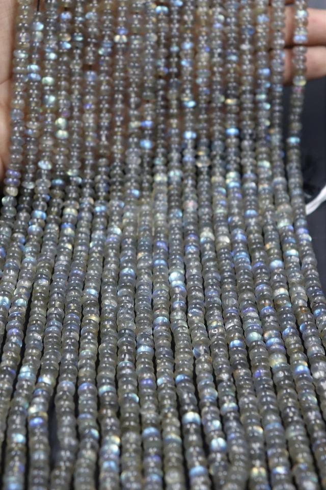 ลูกปัดลาบราโดไรต์ทรงรอนเดลเรียบ